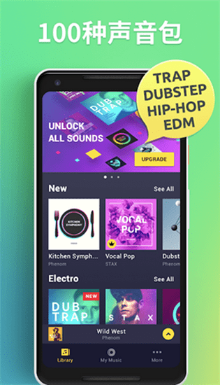 支持多种不同的音色选择:爵士鼓、敲击贝斯、电子合成器、中英文等;